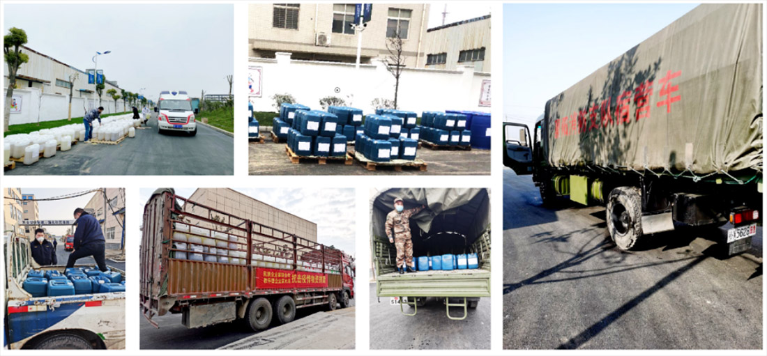 在疫情期間金達(dá)成化工應(yīng)急生產(chǎn)消毒水并無(wú)償捐贈(zèng)物資